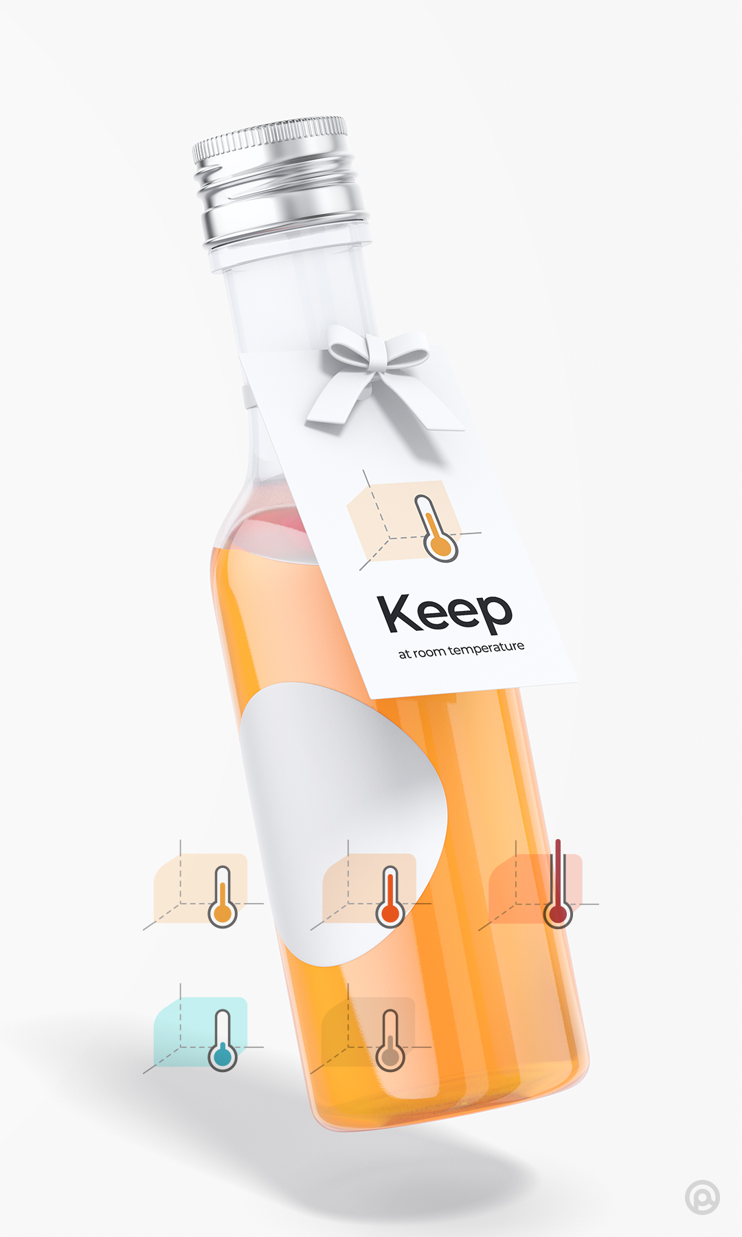 사용 용도: 제품 보관 온도, 직사광선 회피, 상온 보관 등 보관 환경을 안내하는 그래픽 요소로 사용됩니다.